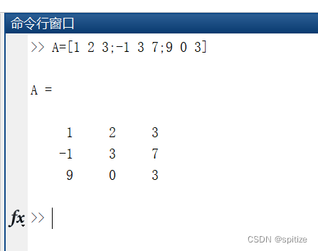 第二步,你就可以在命令行窗口写如下的执行命令了(//每一行元素可以用空格或者逗号隔开,英语表示符中的分号表示换行,切换到下一行)。
