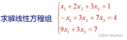 对于上述线性方程组,我们可以拆分成 A * X= b, 其中A矩阵是3行3列的系数矩阵,X是3行1列的未知数x1、x2、x3构成的列向量。b则是等号右边的结果构成的3行1列的结果列向量。