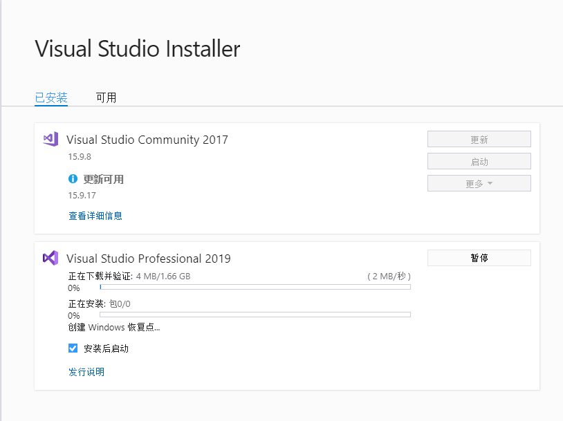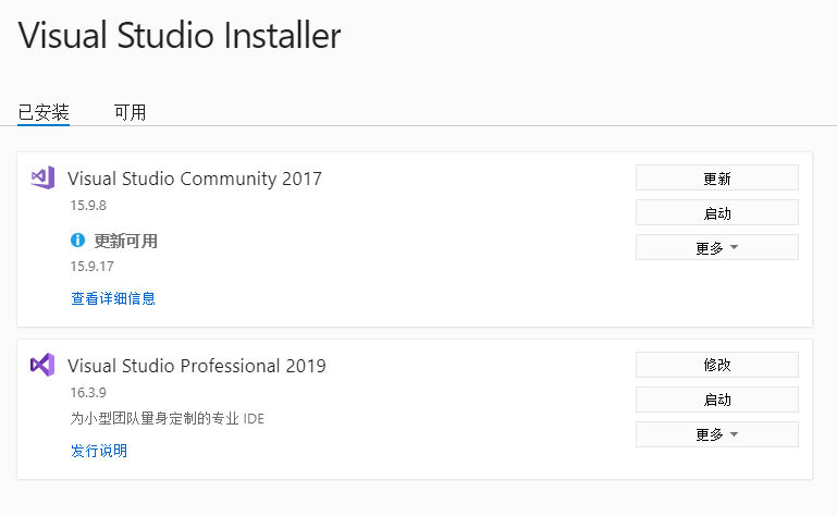 5、目前已有VS2017 VS2019
