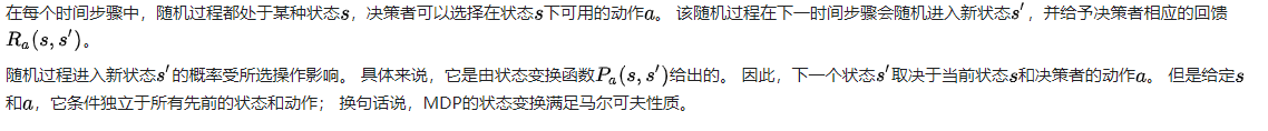只跟当前状态s有关,与之前的状态无关。