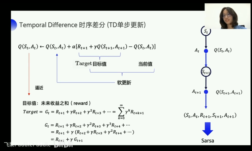 价值不仅仅与 当前状态state做完action拿到的reward有关,还与进入下一个状态state_拿到奖励的期望有关