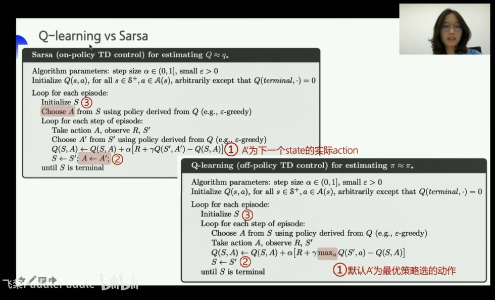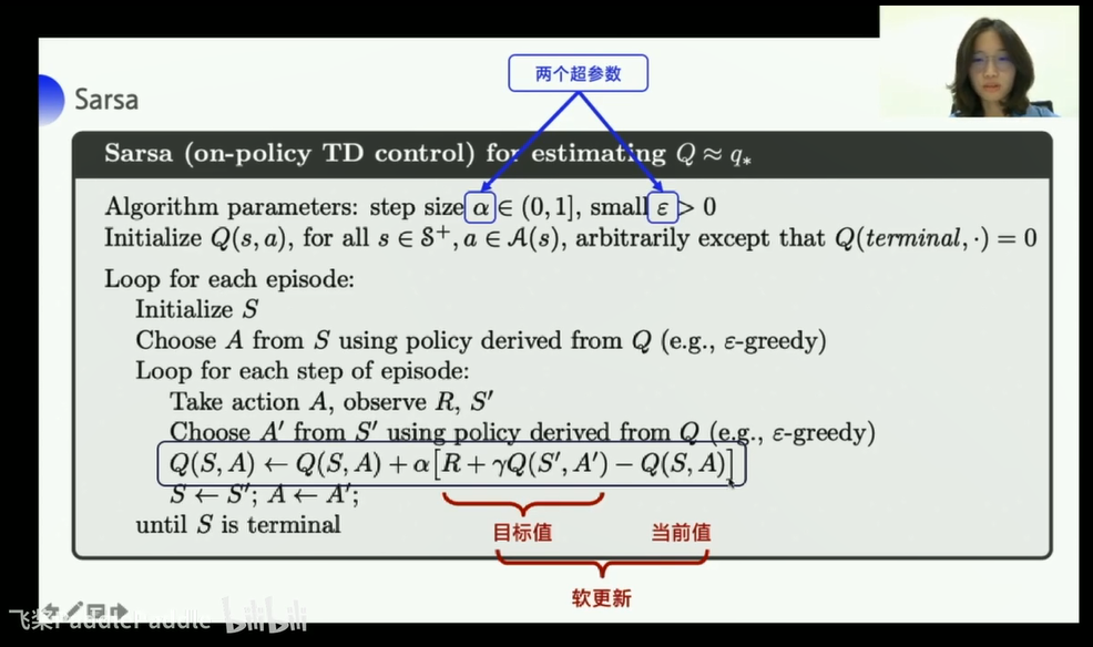 他是on-policy的策略,s a r s' a'都是自己亲自操作得来的经验