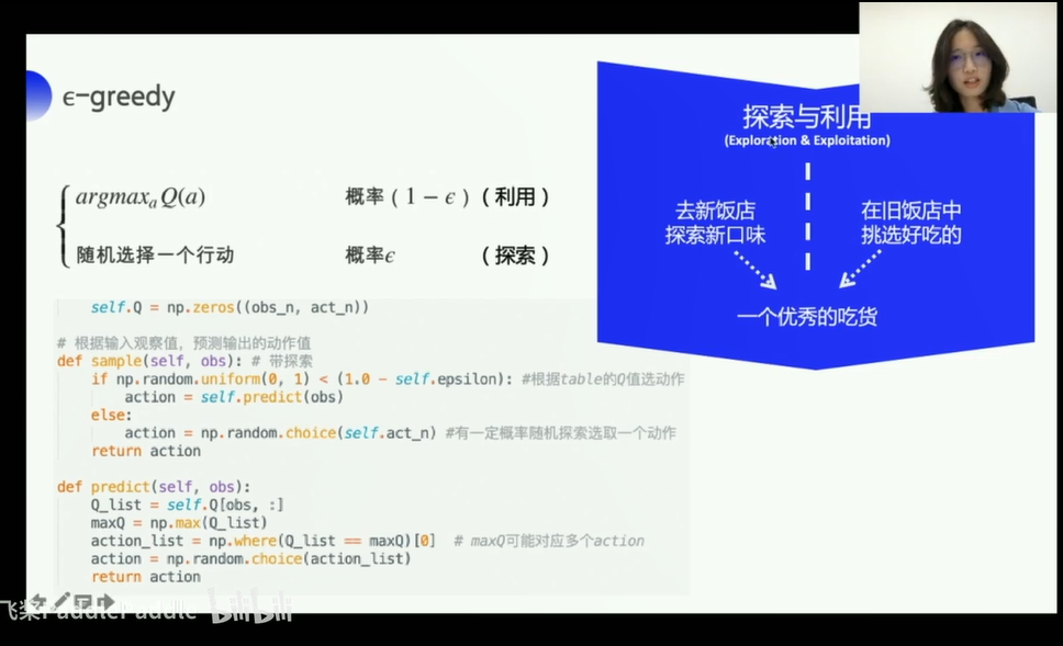 sample一个动作探索/选择最优动作去predict