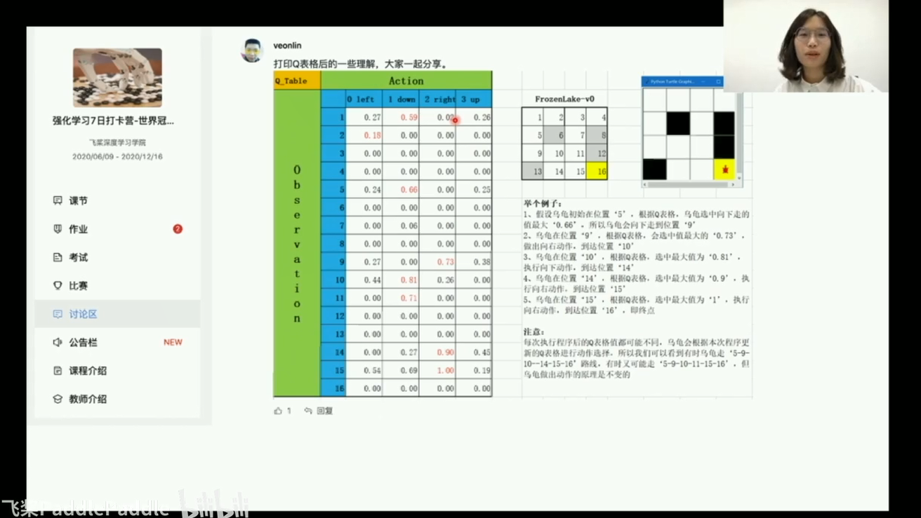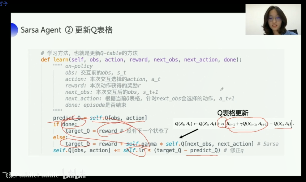 对于q(5,‘↓’):q_target = r + self.gamma * self.q_table.loc[s', a'] q_predict = self.q_table.loc[s, a] q(s,a) = q(s,a) + a (q_target - q_predict)尤其是看q_target,代表我认为动作的价值