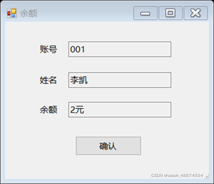 用户成功登录后,可在主界面点选余额按钮,进入余额窗口,即可看到登录账户的账号、姓名和余额信息。