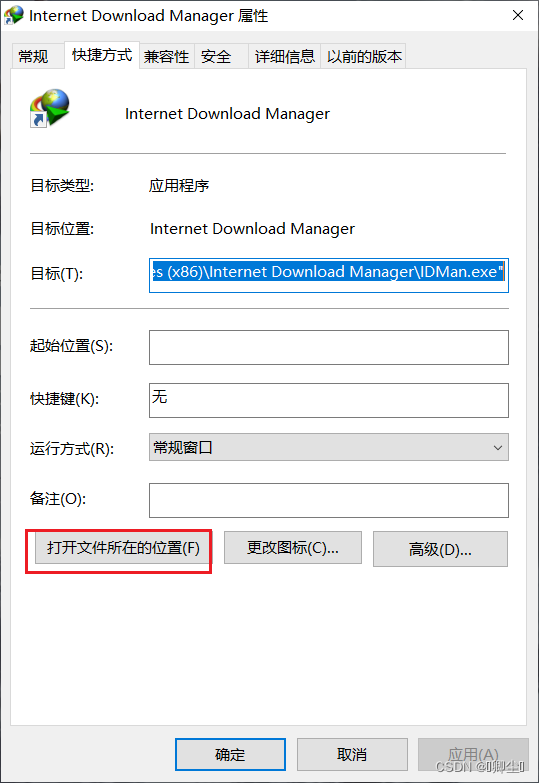 安装完成后退出idm,在桌面右击IDM图标,点击属性,打开文件所在位置。