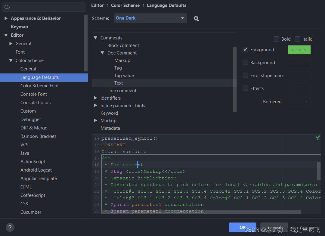 这里我用的是One Dark的主题,然后调了注释字体的颜色