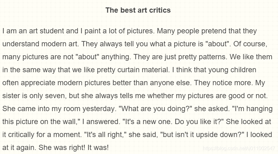 8. abstract painting=抽象画,不表现现实,是一种情绪的表达