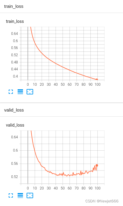 writer = SummaryWriter("logs")for epoch in range(epoch_num):print("epoch:{}".format(epoch))# 模型训练my_model.train()train_loss = 0train_iter = 0for data in train_loader:train_iter += 1x, y = datax, y = x.to(device), y.to(device)y_pred = my_model(x.float())loss = criterion(y_pred, y)train_loss += loss.item()optimizer.zero_grad()loss.backward()optimizer.step()print("train_loss:{}".format(train_loss / train_iter))writer.add_scalar("train_loss", train_loss / train_iter, epoch)# 模型验证my_model.eval()valid_loss = 0valid_iter = 0for data in valid_loader:valid_iter += 1x, y = datax, y = x.to(device), y.to(device)y_pred = my_model(x.float())loss = criterion(y_pred, y)valid_loss += loss.item()if valid_loss < valid_loss_min:torch.save(model.state_dict(my_model), 'model.pt')valid_loss_min = valid_lossprint("model saved to path:model.pt")print("valid_loss:{}".format(valid_loss / valid_iter))writer.add_scalar("valid_loss", valid_loss / valid_iter, epoch)writer.close()# 加载训练好的模型和参数