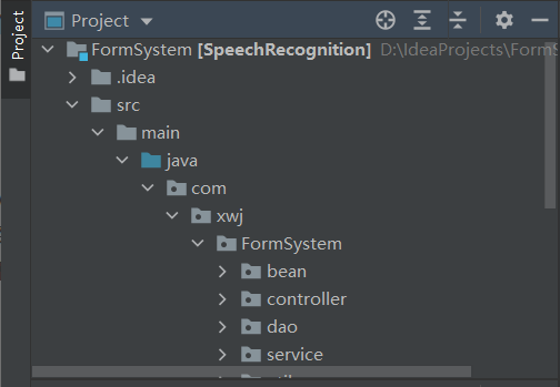 上边这张图片是一个例子,在项目文件夹下新建四个文件夹,名字分别为bean(或者entity)、dao、service和controller。