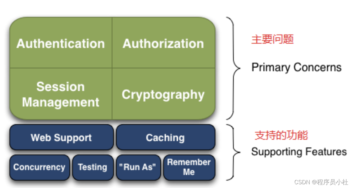 - Shiro 可以完成:认证、授权、加密、会话管理、与Web 集成、缓存 等。