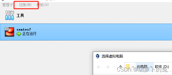 控制 -> 注册(A) -> 打开“选择虚拟电脑”对话框 -> 选择拷贝过来的 CentOS7.vbox 文件,即可完成虚拟机的移植与注册