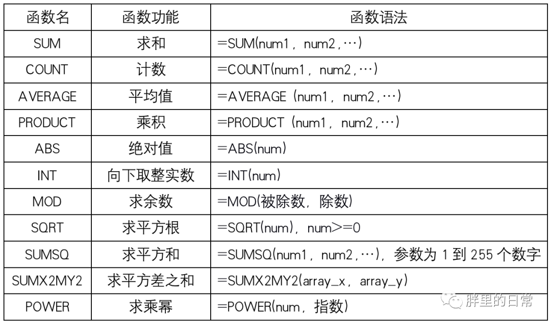 简单的数据计算可以直接通过单元格的加减乘除实现,遇到数据量大,运算复杂的,可以采用数据计算函数来解决,常用的无非就是SUM、COUNT、AVERAGE、POWER、MOD等,常见的数据计算函数如下: