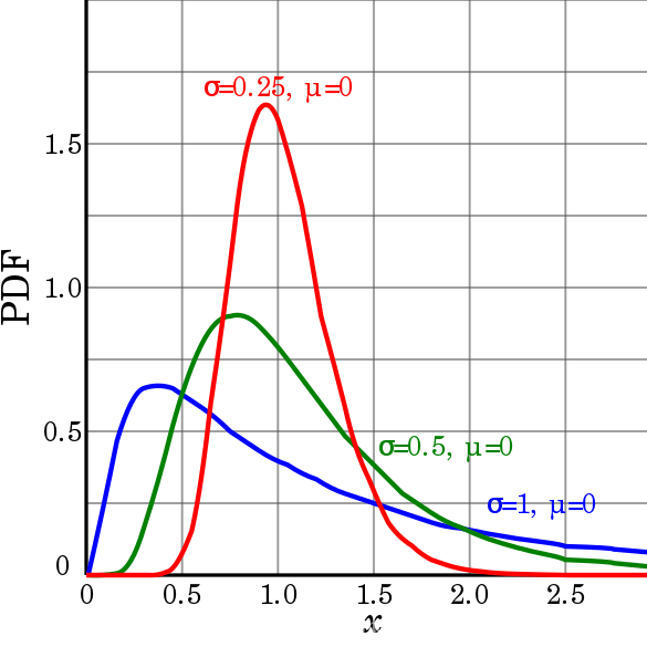 假设有一个随机变量X服从对数正态分布,均值=μ,方差=σ²。X有总共n个可能值(x1,x2,x3……xn)。现在取所有X值的自然对数,并创建一个新的随机变量Y=[Log(x1),Log(x2),Log(x3)…Log(xn)]。这个随机变量Y是正态分布的。