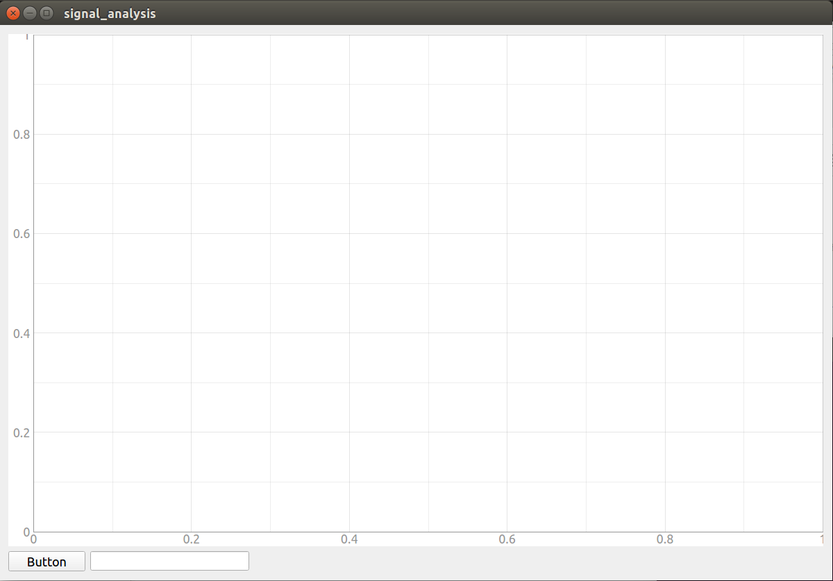 import pyqtgraph as pg # pyqtgraph是一个很好用的绘图模块class Signal(QWidget):def __init__(self): super(Signal, self).__init__()self.initUI()def initUI(self):self.setGeometry(0, 0, 1200, 800) # 设置GUI界面的大小self.setWindowTitle('signal_analysis') # 界面窗口名称layout_chart = QtWidgets.QGridLayout() # 表格布局self.setLayout(layout_chart)pg.setConfigOption('background', 'w') # 把绘图控件的背景设置为白色,默认是黑色的self.pw = pg.PlotWidget()self.pw.showGrid(x=True, y=True) # 绘图控件显示网格self.curve = self.pw.plot(pen='k') # 画笔颜色设置layout_chart.addWidget(self.pw, 0, 0, 9, 10) # 绘图控件在整个GUI界面上所占的区域设置,这里表示绘图控件在表格布局的第一行第一列,并且占据9行10列的区域bt1 = QPushButton('Button', self) # 按钮控件layout_chart.addWidget(bt1, 10, 0, 1, 1) # 按钮控件在表格布局中的第11行第1列,因为前面设置了绘图控件占9行,所以前面9行都是绘图控件,第10行空出来,不然图像和别的控件挨太近不好看text1_edit = QLineEdit("", self) # # 文本编辑框layout_chart.addWidget(text1_edit, 10, 1, 1, 2) # 文本编辑框放在按钮旁边,占2列宽def main():app = QtWidgets.QApplication(sys.argv)gui = Signal() gui.show() sys.exit(app.exec_())if __name__ =='__main__':main()