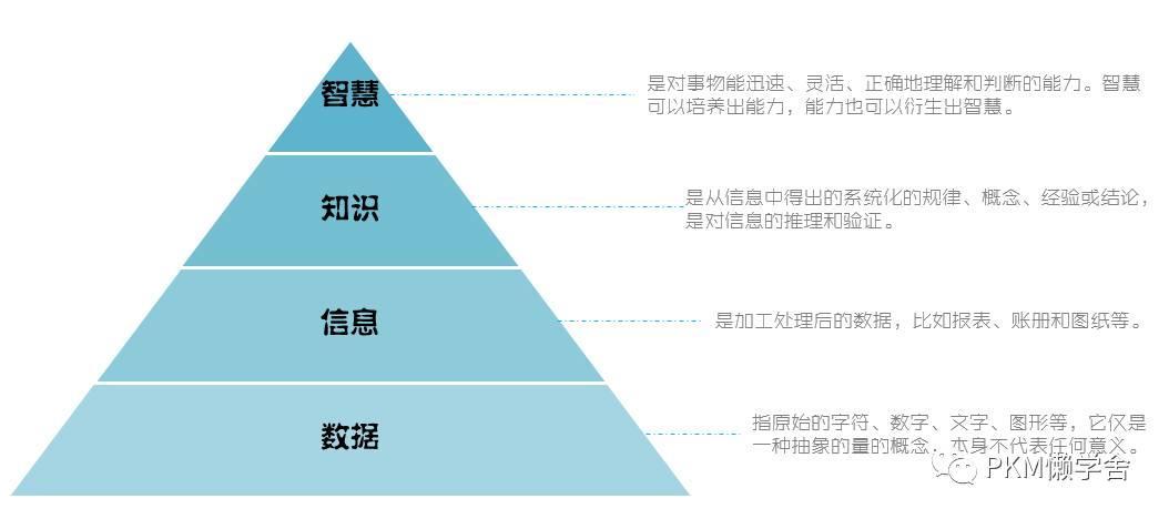要弄清PKM,我们先要理清楚几个概念——数据、信息、知识、智慧(如下图)。