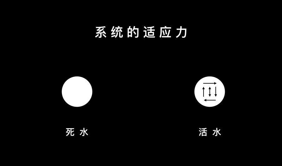 有适应力的系统是会动态变化的,一直保持恒定不动的系统是没有适应能力的,可以理解为活水与死水:活水有水的流入流出,遇到旱季和雨季可以灵活调节应对;死水因为没有流入流出的渠道,遇到干涸季只能蒸干旱涝。